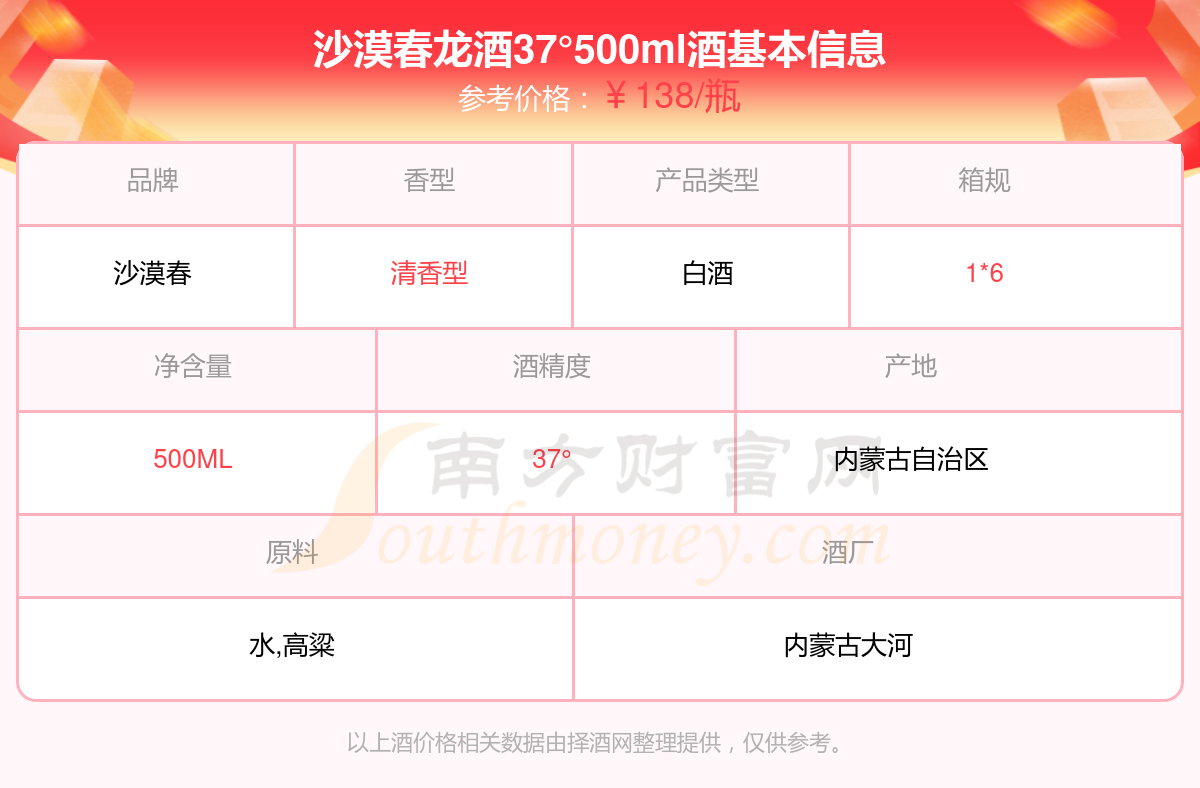 沙漠春酒是一款白酒產(chǎn)品,在銷售市場上也是受到了不少廣大人民的喜歡和青睞。