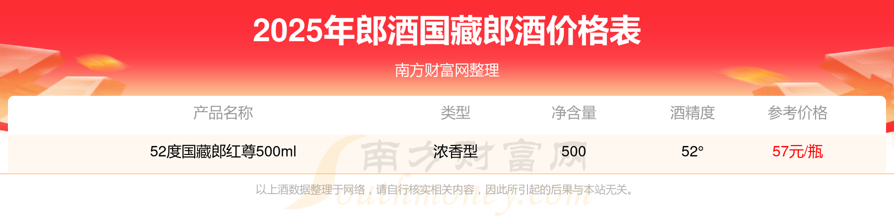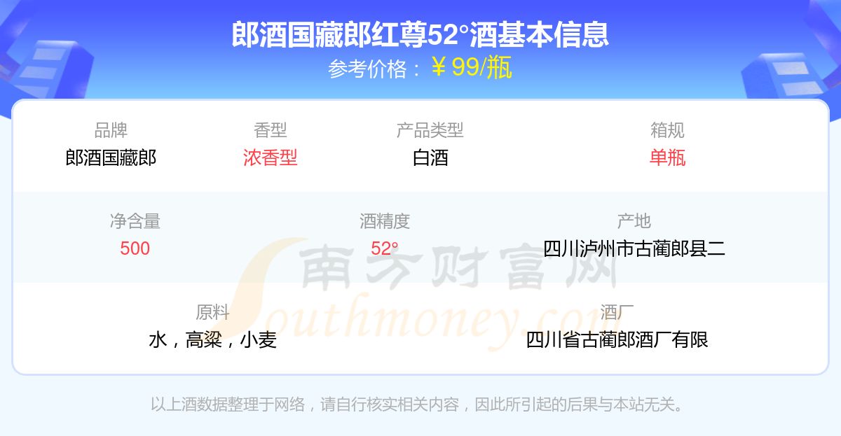 郎酒國藏郎紅尊52°基本信息