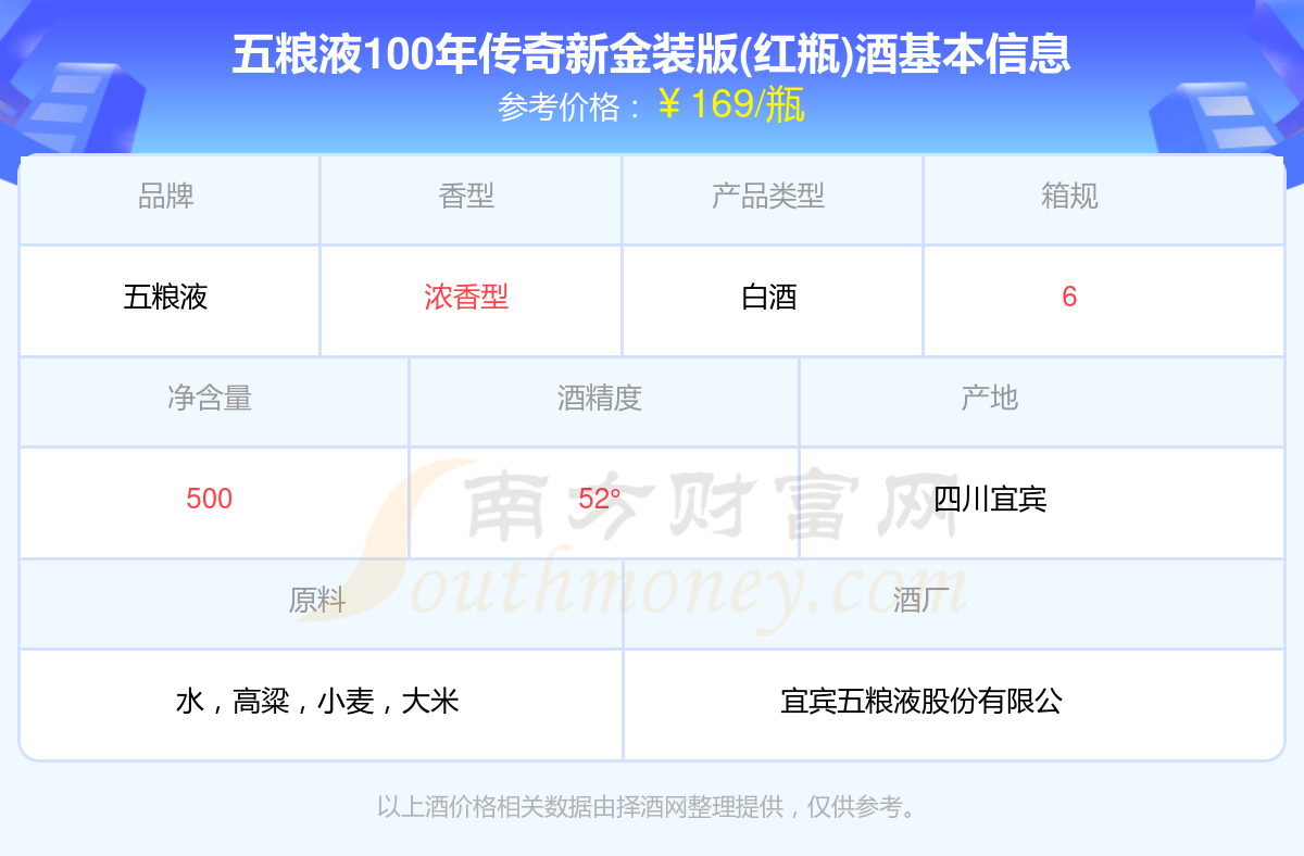 五糧液100年傳奇新金裝版(紅瓶)基本信息