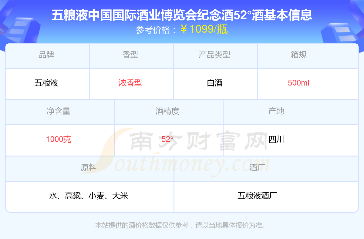 五糧液中國國際酒業(yè)博覽會紀(jì)念酒52°基本信息