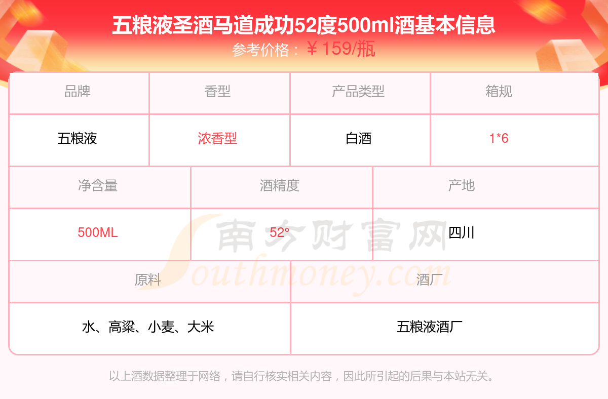 五糧液圣酒馬道成功52度500ml基本信息