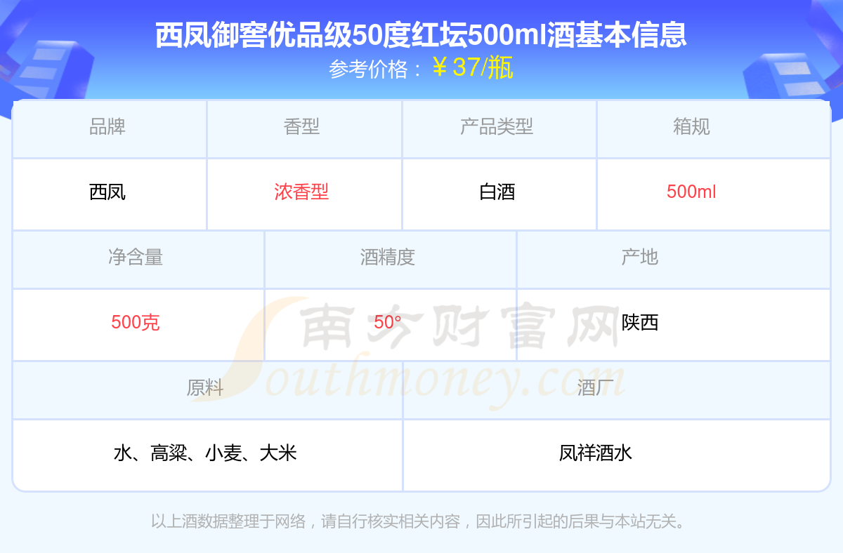 西鳳御窖優(yōu)品級50度紅壇500ml基本信息