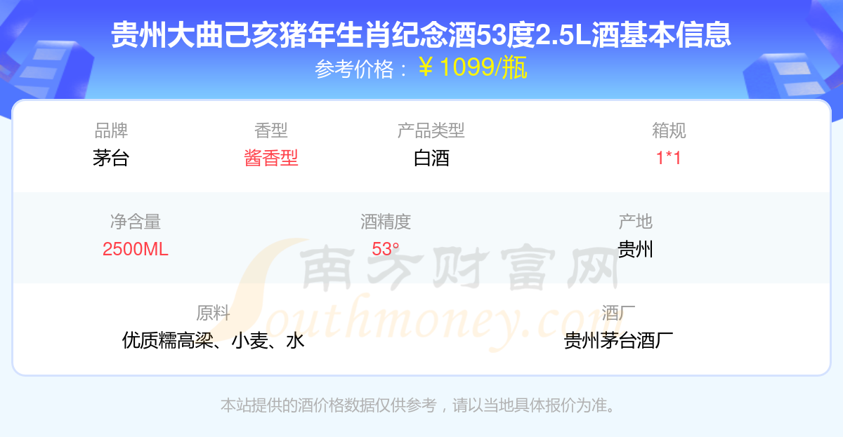 貴州大曲己亥豬年生肖紀念酒53度2.5L基本信息