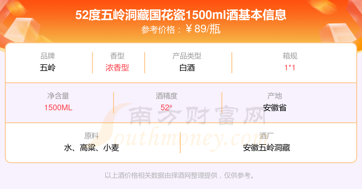 52度五嶺洞藏國(guó)花瓷1500ml基本信息