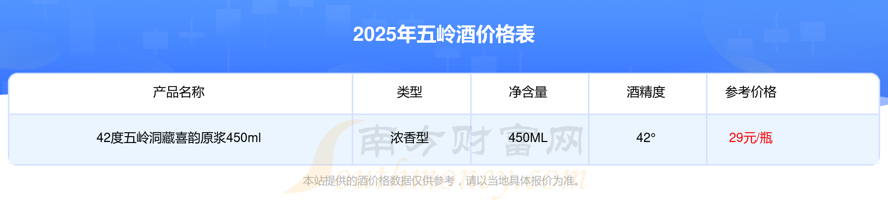 本站提供的酒價(jià)格數(shù)據(jù)僅供參考,請(qǐng)以當(dāng)?shù)鼐唧w報(bào)價(jià)為準(zhǔn)。