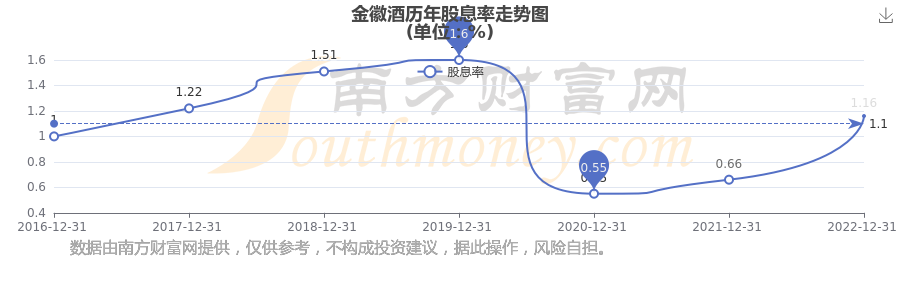 近年金徽酒年度股息率走勢(shì)如下圖: