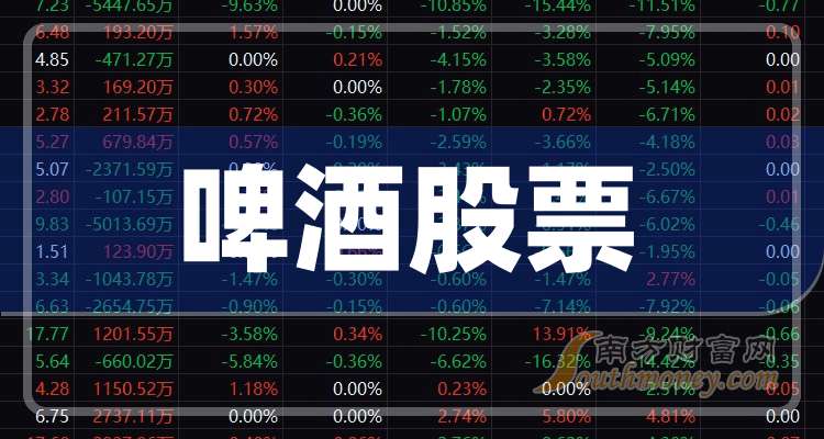 啤酒概念股有瀘州老窖、青島啤酒、燕京啤酒、重慶啤酒、珠江啤酒、奧瑞金、蘇墾農(nóng)發(fā)、怡亞通、金徽酒、重藥控股等27家上市公司。