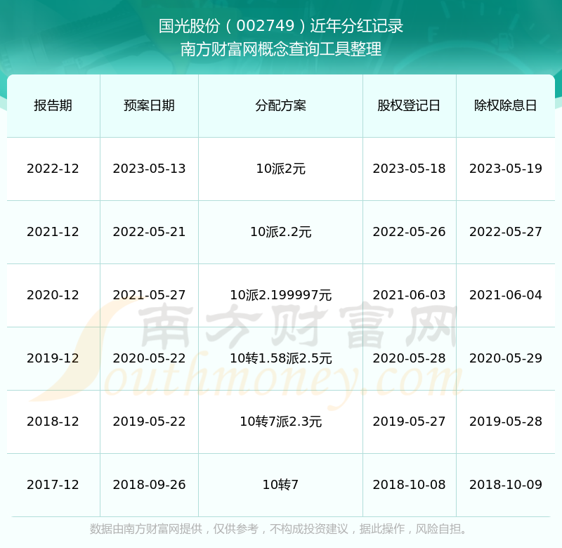 國光股份最新一次公布的分紅方案為10派2元。本次權(quán)益分派股權(quán)登記日為2023年5月18日,除權(quán)除息日為2023年5月19日,派息日為2023年5月19日。