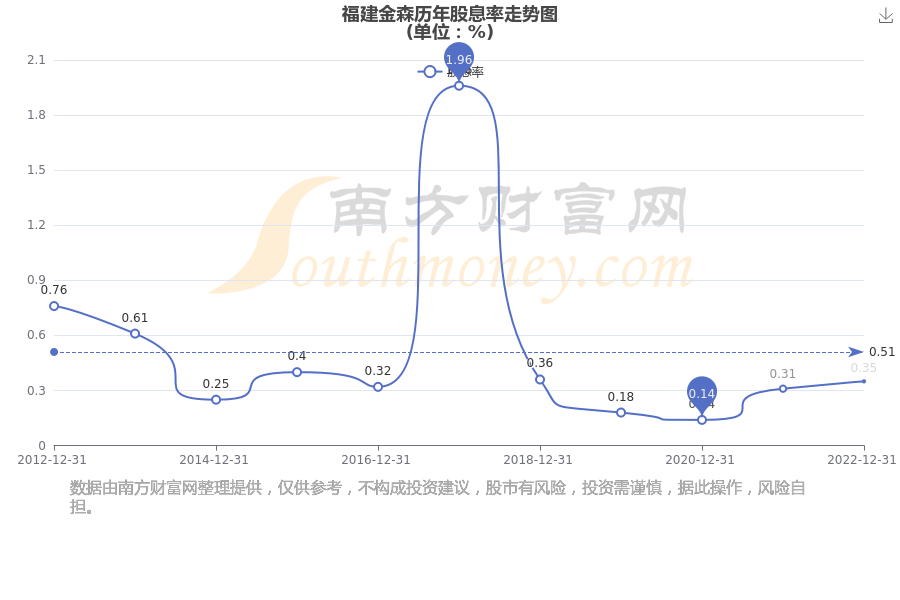 近年福建金森年度股息率走勢如下圖: