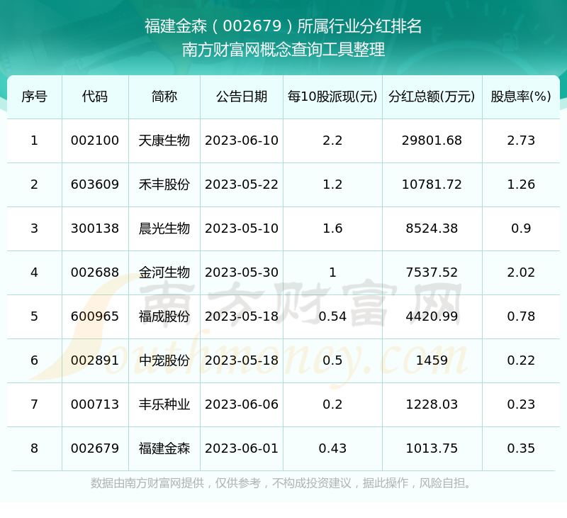 二、福建金森002679行業(yè)分紅排名