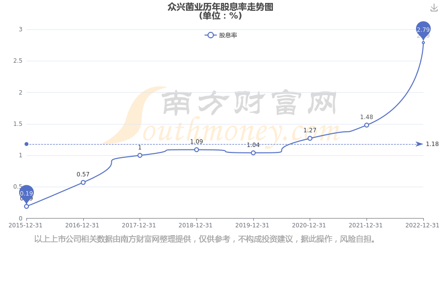 眾興菌業(yè)歷年股息率走勢(shì)如下圖:
