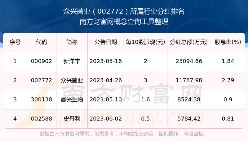 二、眾興菌業(yè)002772行業(yè)分紅排名