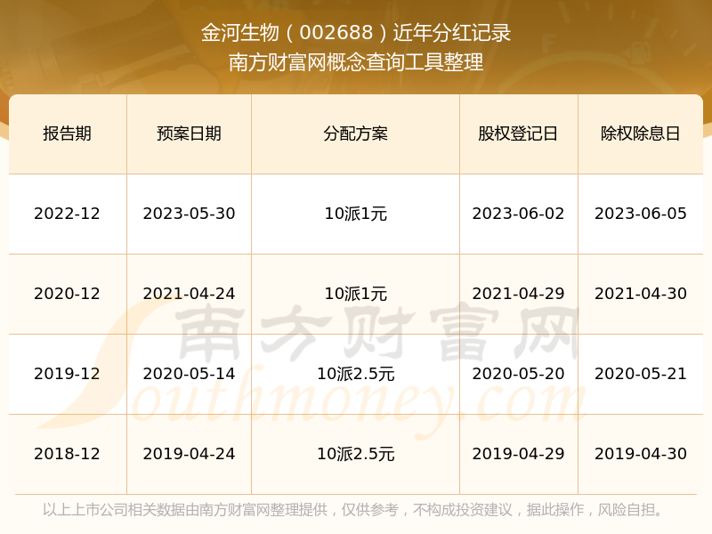 一、金河生物(002688)股票分紅記錄