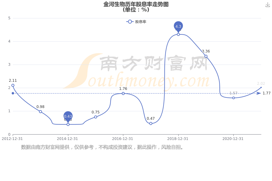 近年金河生物年度股息率走勢如下圖: