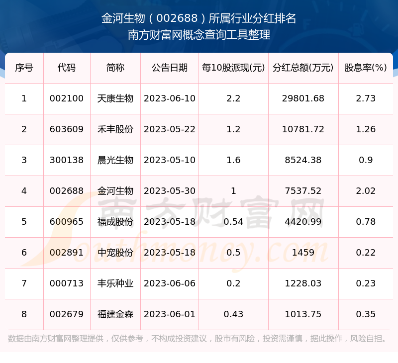 二、金河生物002688行業(yè)分紅排名