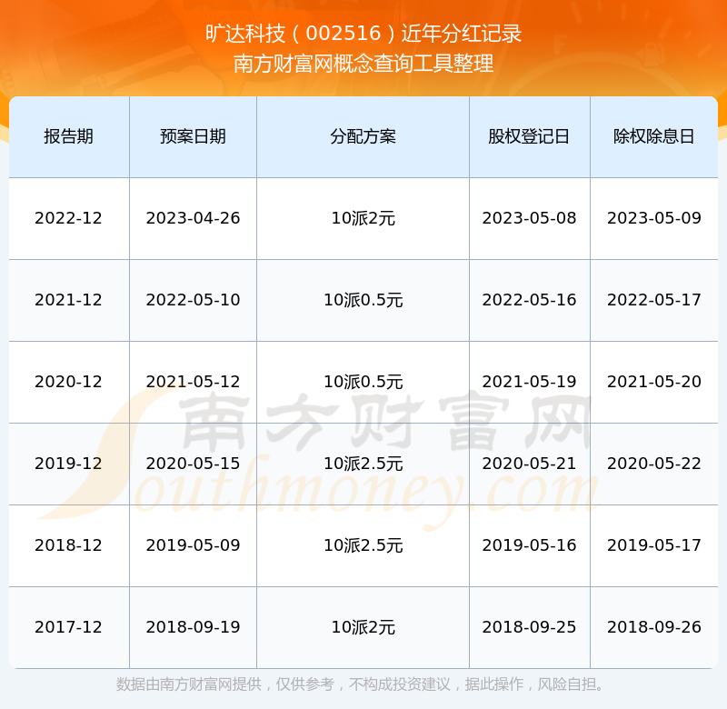 一、曠達科技(002516)股票分紅記錄