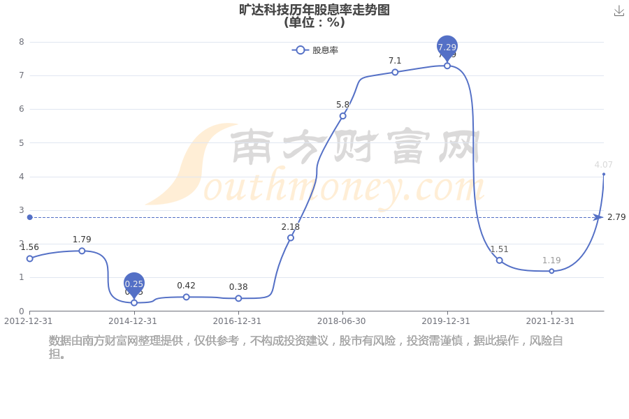 近年曠達科技年度股息率走勢如下圖: