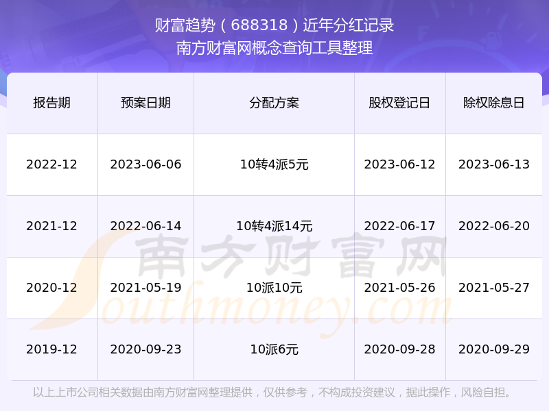 一、財(cái)富趨勢(shì)(688318)股票分紅記錄