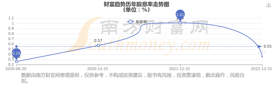 近年財(cái)富趨勢(shì)年度股息率走勢(shì)如下圖:
