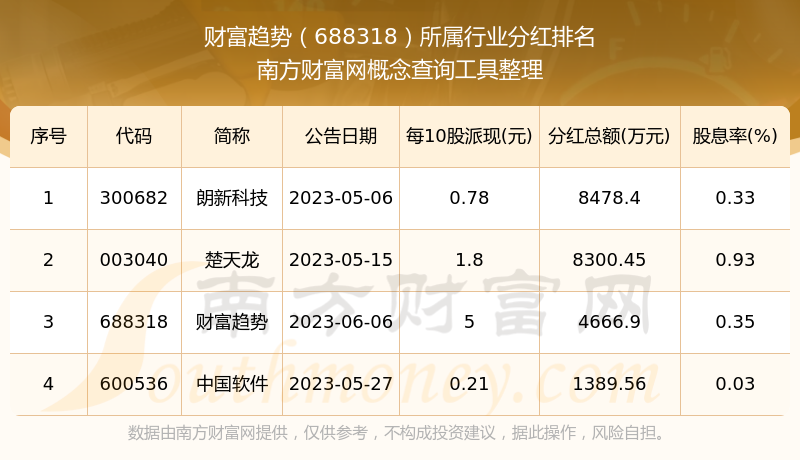 二、財(cái)富趨勢(shì)688318行業(yè)分紅排名