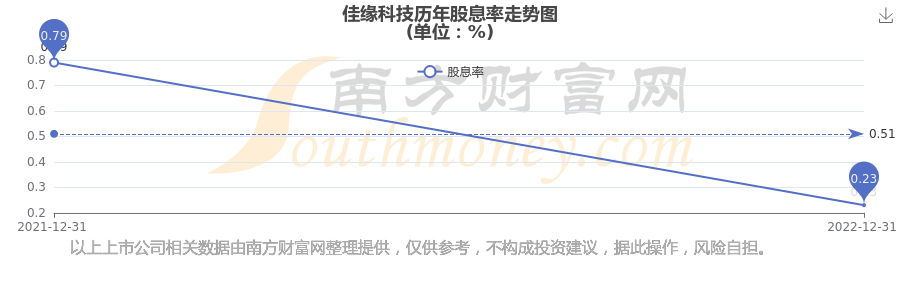 近年佳緣科技年度股息率走勢(shì)如下圖: