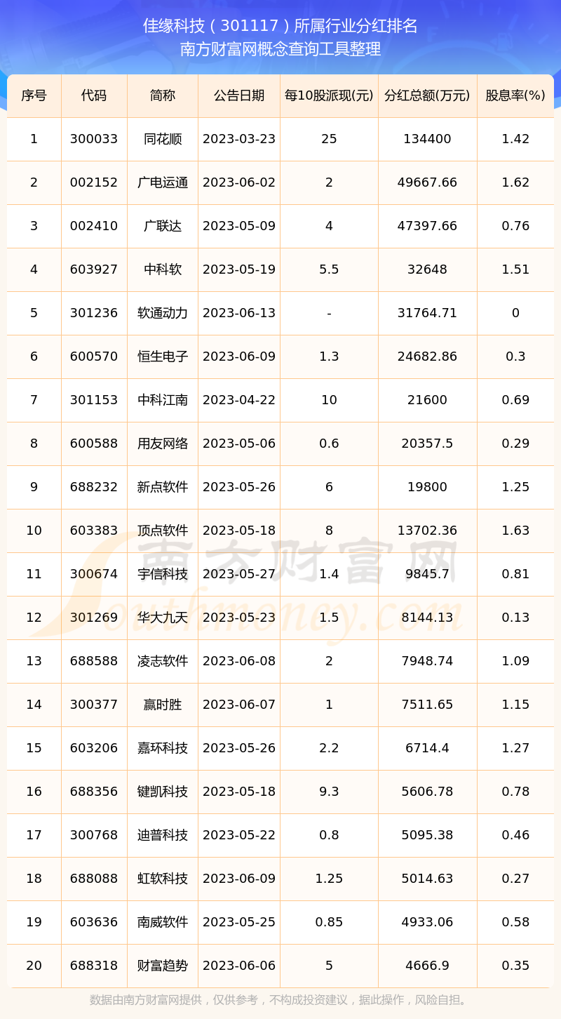 按照南方財(cái)富網(wǎng)趨勢(shì)選股系統(tǒng)統(tǒng)計(jì),佳緣科技所屬行業(yè)為軟件開(kāi)發(fā)行業(yè),軟件開(kāi)發(fā)行業(yè)分紅排名情況如下表:
