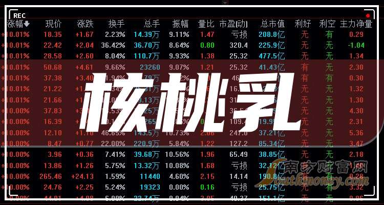 據(jù)南方財(cái)富網(wǎng)概念查詢工具數(shù)據(jù)顯示,核桃乳板塊概念股有: