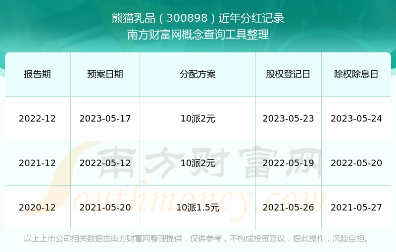 熊貓乳品最新一次公布的分紅方案:10派2元。