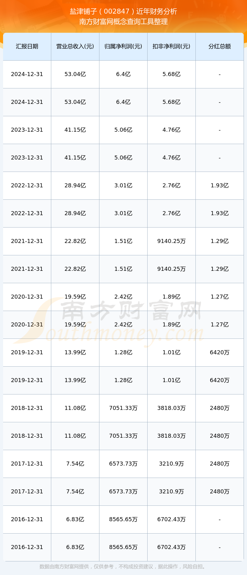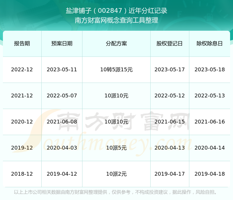 鹽津鋪?zhàn)託v年分紅派息情況如下表所示: