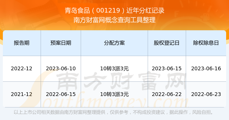青島食品最新一次公布的分紅方案:10轉(zhuǎn)3派3元。