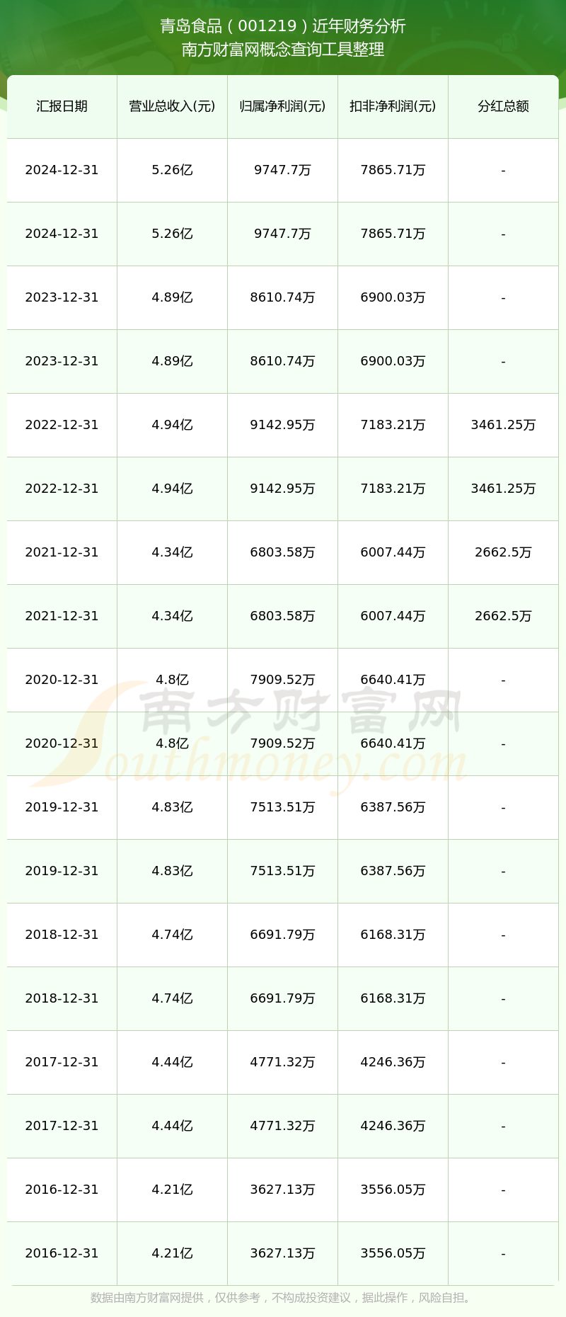2024年報(bào)顯示,青島食品實(shí)現(xiàn)營收5.26億,同比增長7.47%;凈利潤9747.7萬,同比增長13.2%;毛利率35.87%。