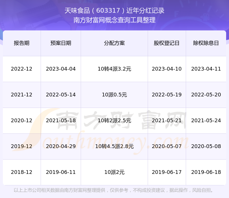 天味食品最新一次公布的分紅方案為10轉(zhuǎn)4派3.2元。本次權(quán)益分派股權(quán)登記日為2023年4月10日,除權(quán)除息日為2023年4月11日,派息日為2023年4月11日。