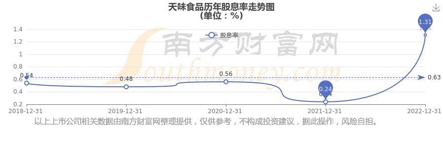 按照南方財富網(wǎng)趨勢選股系統(tǒng)統(tǒng)計,天味食品所屬行業(yè)為食品飲料行業(yè),食品飲料行業(yè)分紅排名情況如下表: