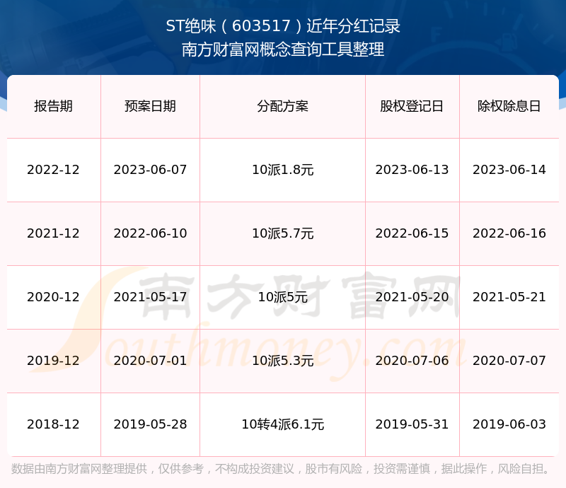 ST絕味最新一次公布的分紅方案:10派1.8元。