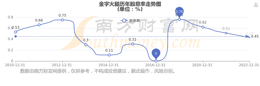 近年金字火腿年度股息率走勢(shì)如下圖: