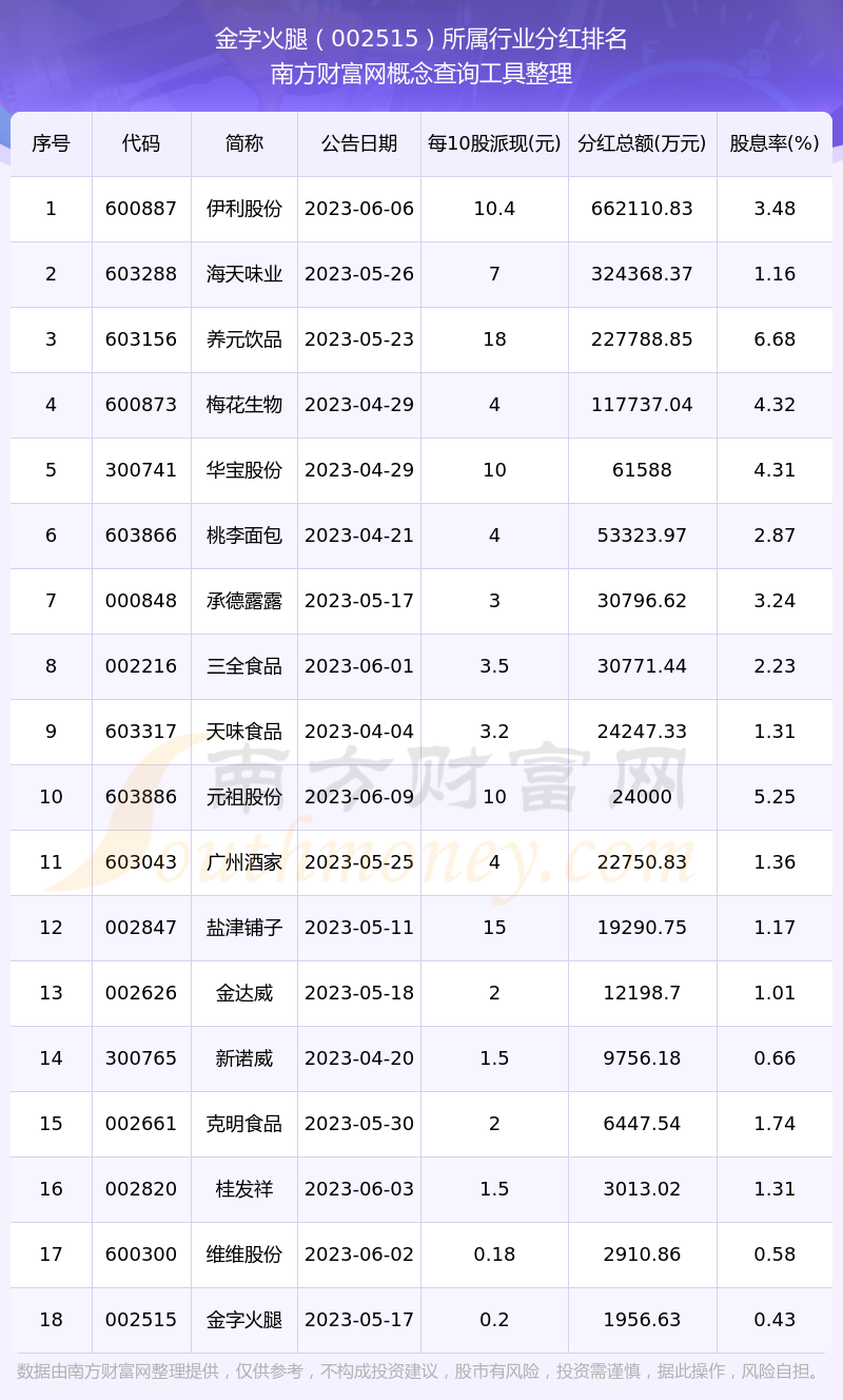 二、金字火腿002515行業(yè)分紅排名