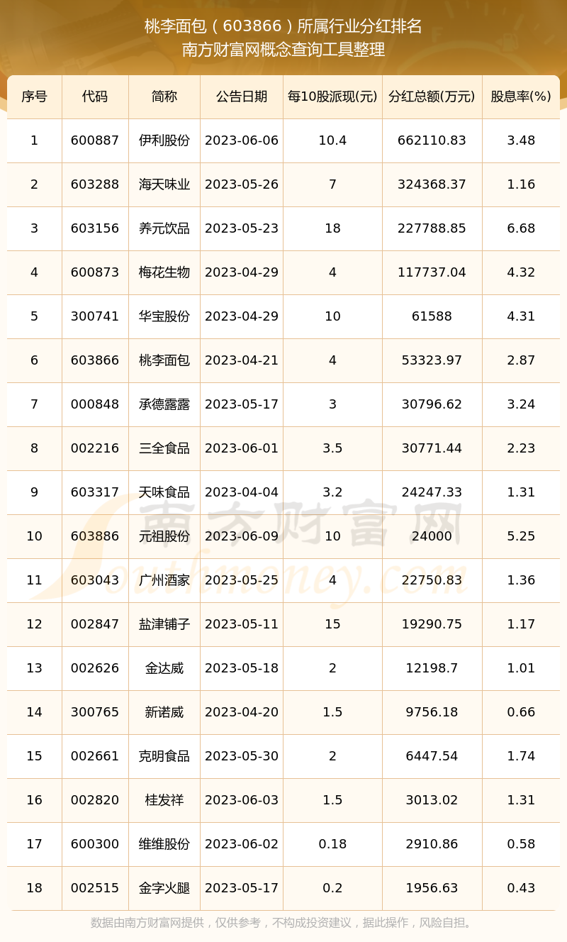 二、桃李面包603866行業(yè)分紅排名