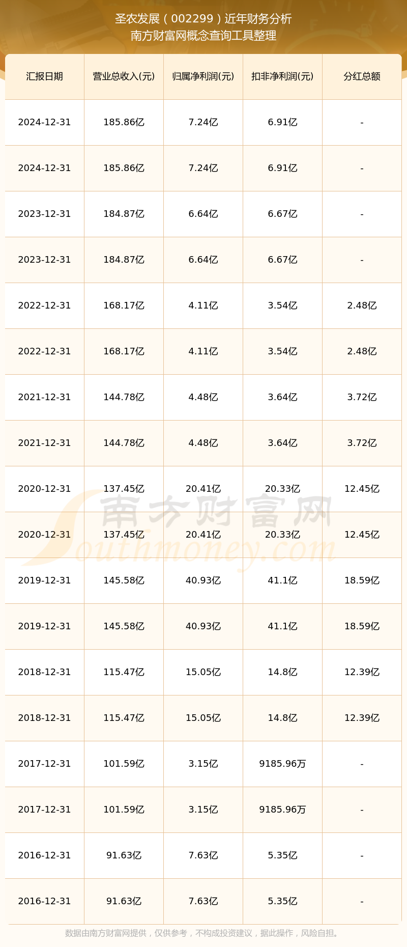 圣農發(fā)展歷年分紅派息情況如下表所示: