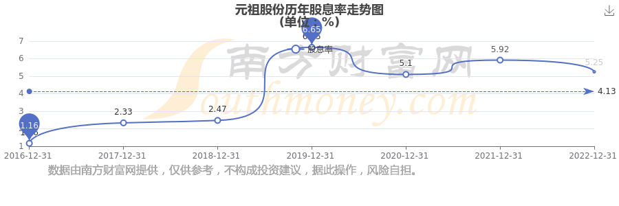 近年元祖股份年度股息率走勢(shì)如下圖: