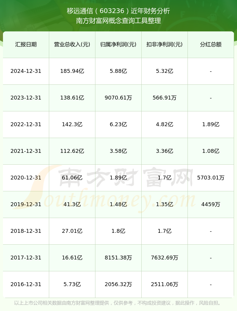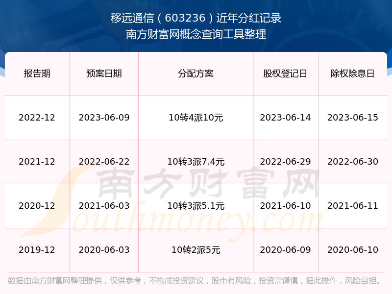 近年移遠(yuǎn)通信分紅派息情況如下表所示: