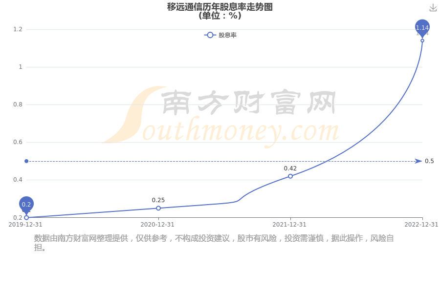 移遠(yuǎn)通信歷年股息率走勢(shì)如下圖: