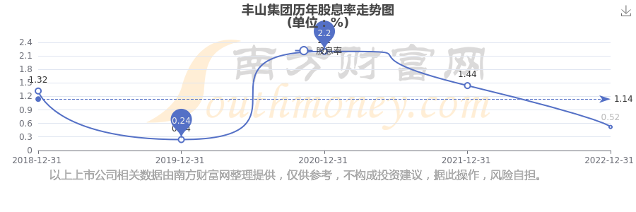 近年豐山集團(tuán)年度股息率走勢(shì)如下圖: