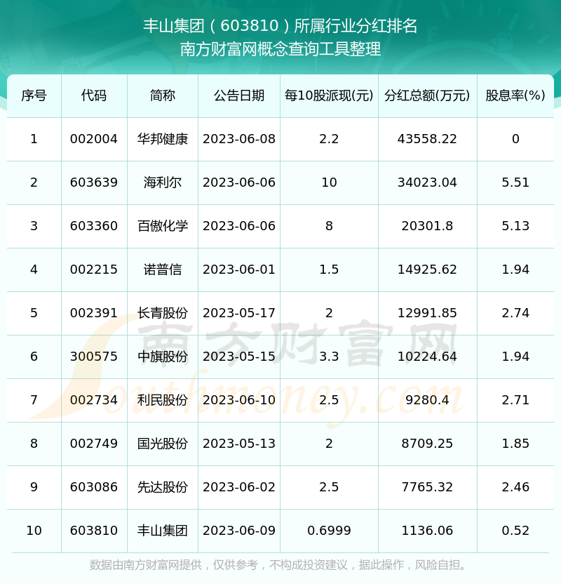 二、豐山集團(tuán)603810行業(yè)分紅排名