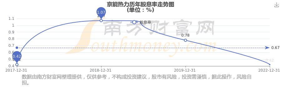 近年京能熱力年度股息率走勢(shì)如下圖: