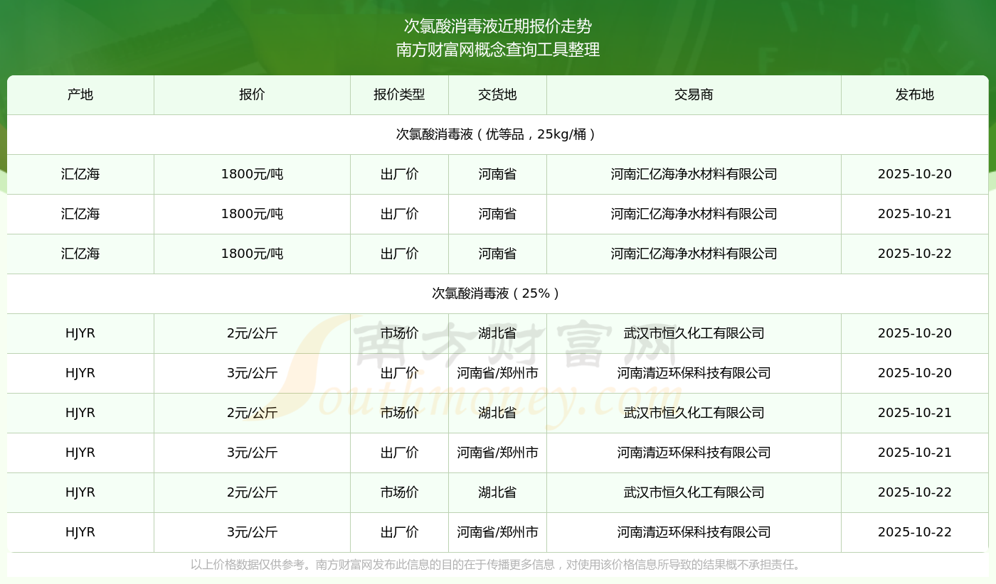 次氯酸消毒液價格多少?次氯酸消毒液近期走勢(2025/10/23)