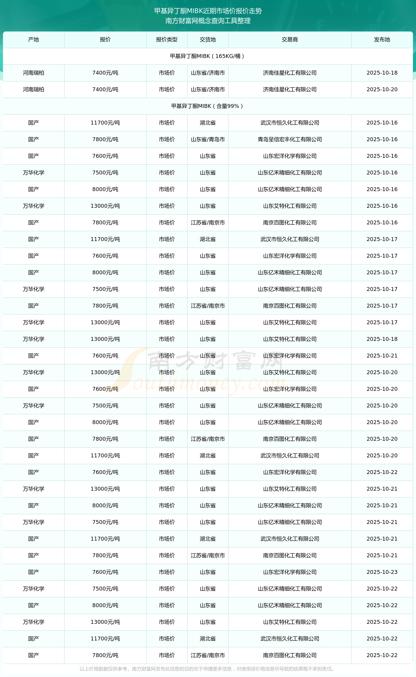 甲基異丁酮MIBK市場(chǎng)價(jià)報(bào)價(jià):2025年10月23日甲基異丁酮MIBK市場(chǎng)價(jià)多少錢(qián)