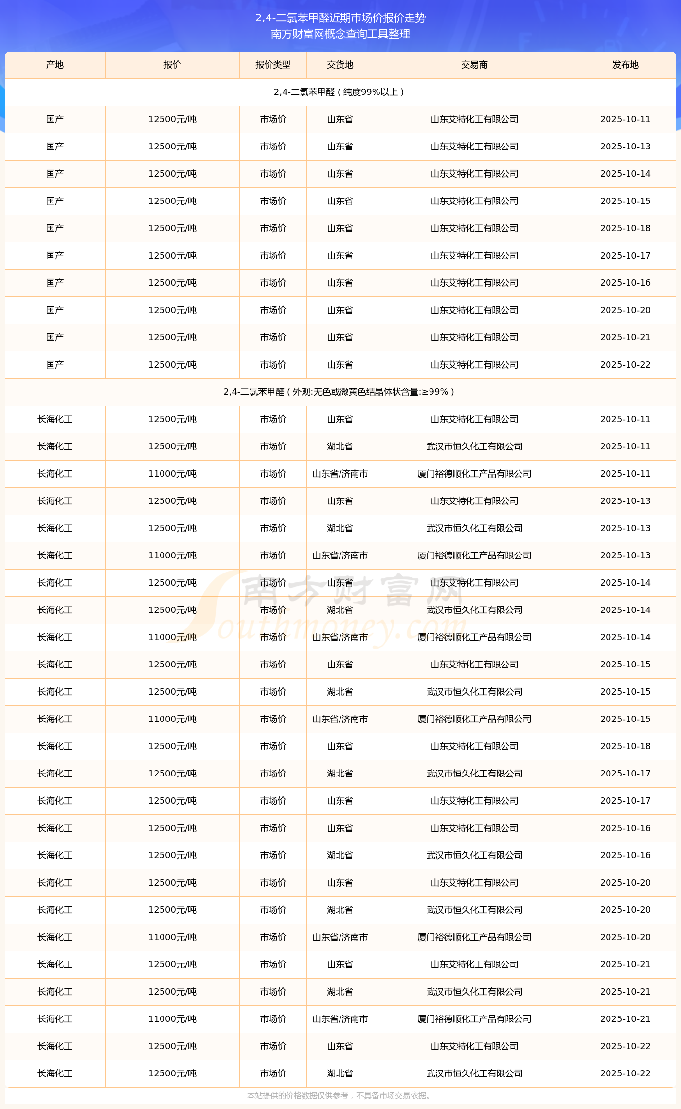 2025年10月22日2,4-二氯苯甲醛市場價報價行情及近期市場價報價走勢