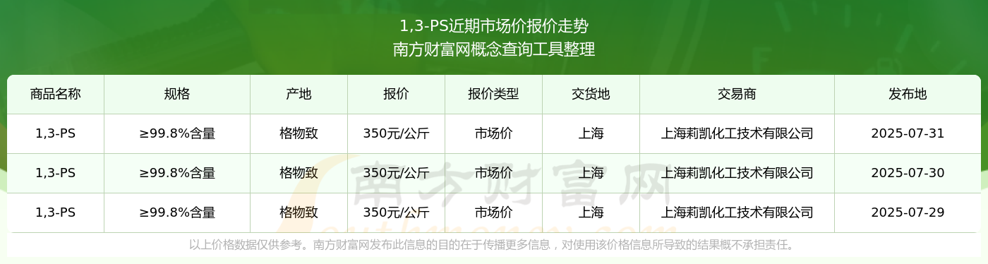 2025年7月31日1,3-PS市場價(jià)報(bào)價(jià)動(dòng)態(tài)