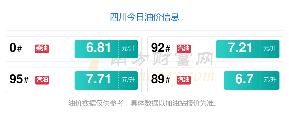 油價調(diào)整最新消息:四川汽油、柴油9月10日每升最新價格為:92號汽油為7.21元;95號汽油為7.71元;89號汽油為6.7元,減了0.13;0號柴油為6.81元,調(diào)整時間為8月27日。下一輪油價調(diào)整時間9月23日24時。