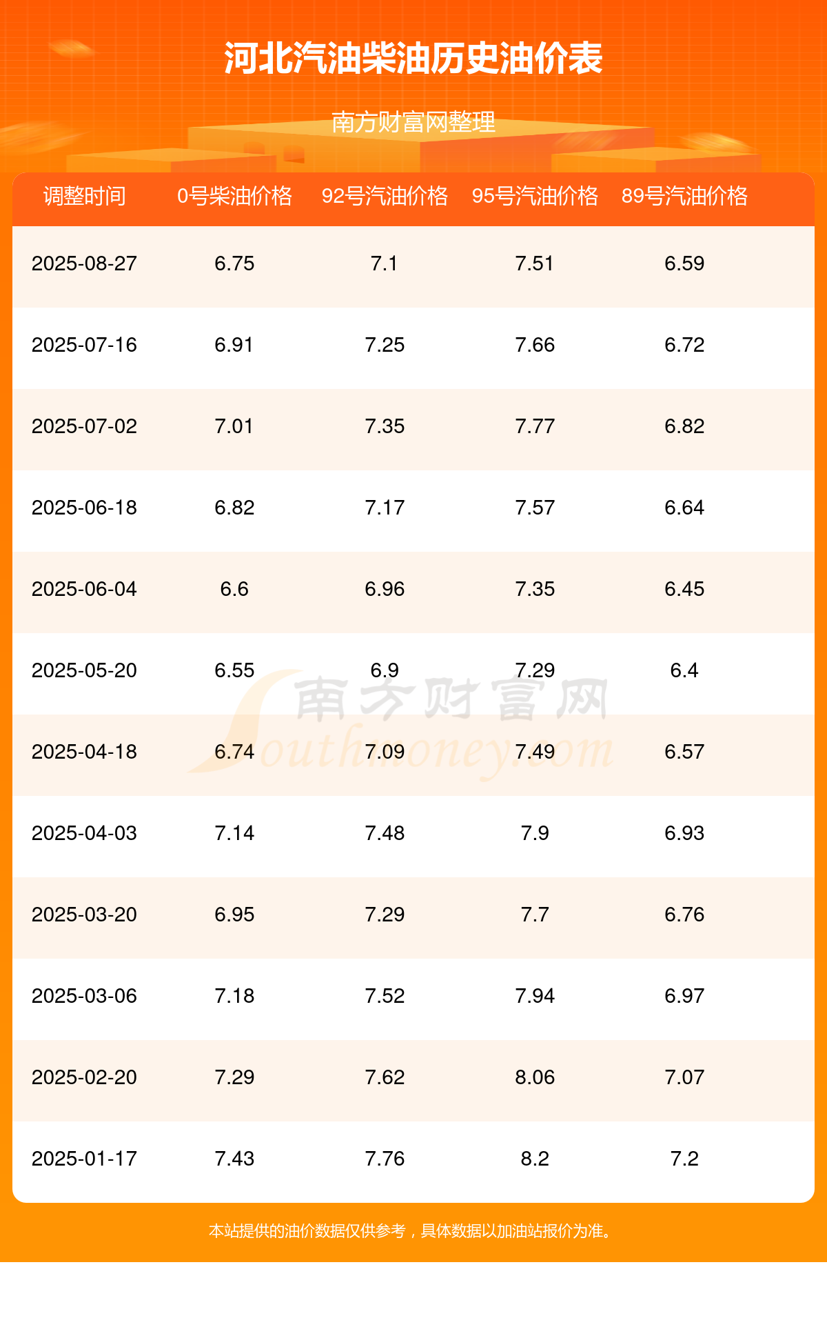 河北89號(hào)汽油油價(jià)調(diào)整表